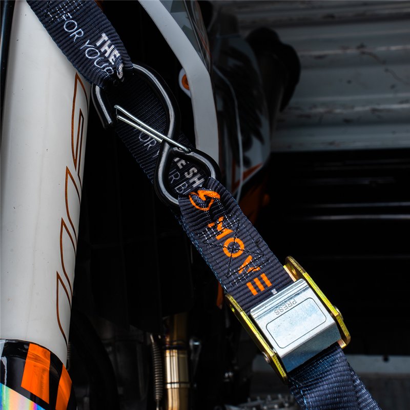 Sono robuste, affidabili e tengono la vostra moto Supermoto o Enduro al sicuro ovunque andiate. Lecinghie di fissaggio Movetronix possono gestire carichi fino a 550 kg e rendono il trasporto semplice: basta tirare per stringere e premere il pulsante di rilascio rapido per scaricare in pochi secondi.